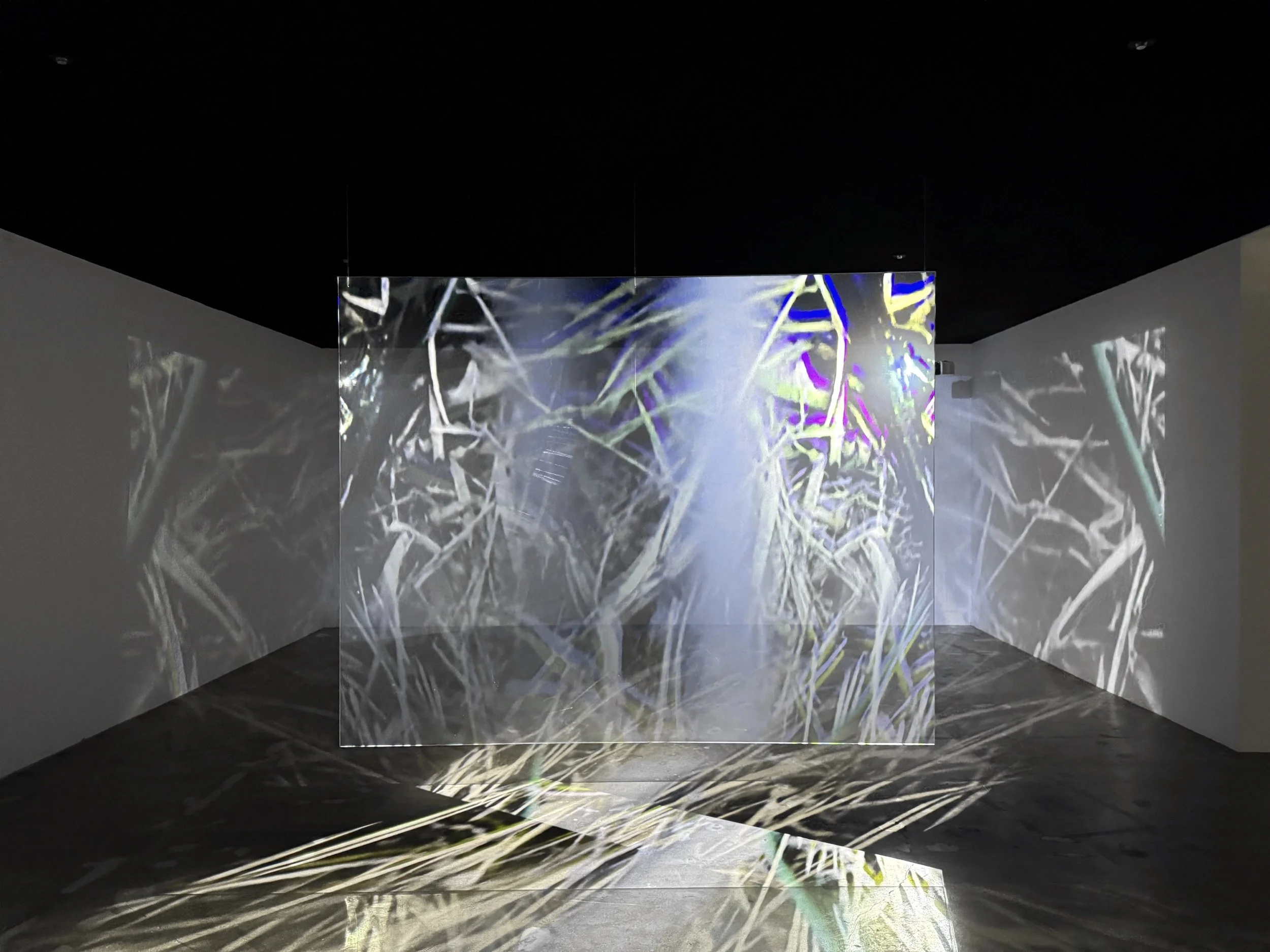 3 channel infrared high-definition video, color, sound, holographic plexiglass,
