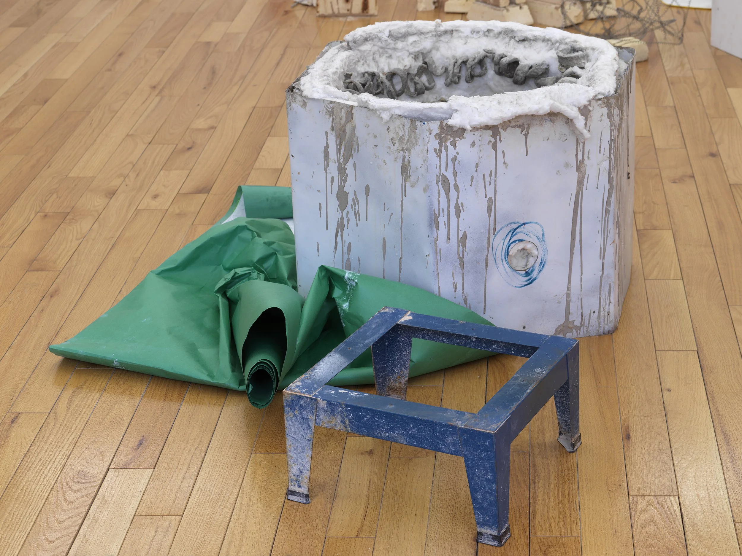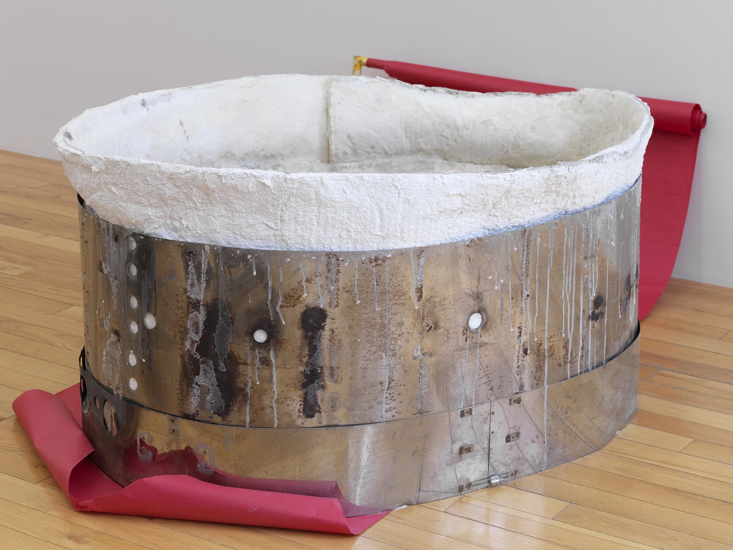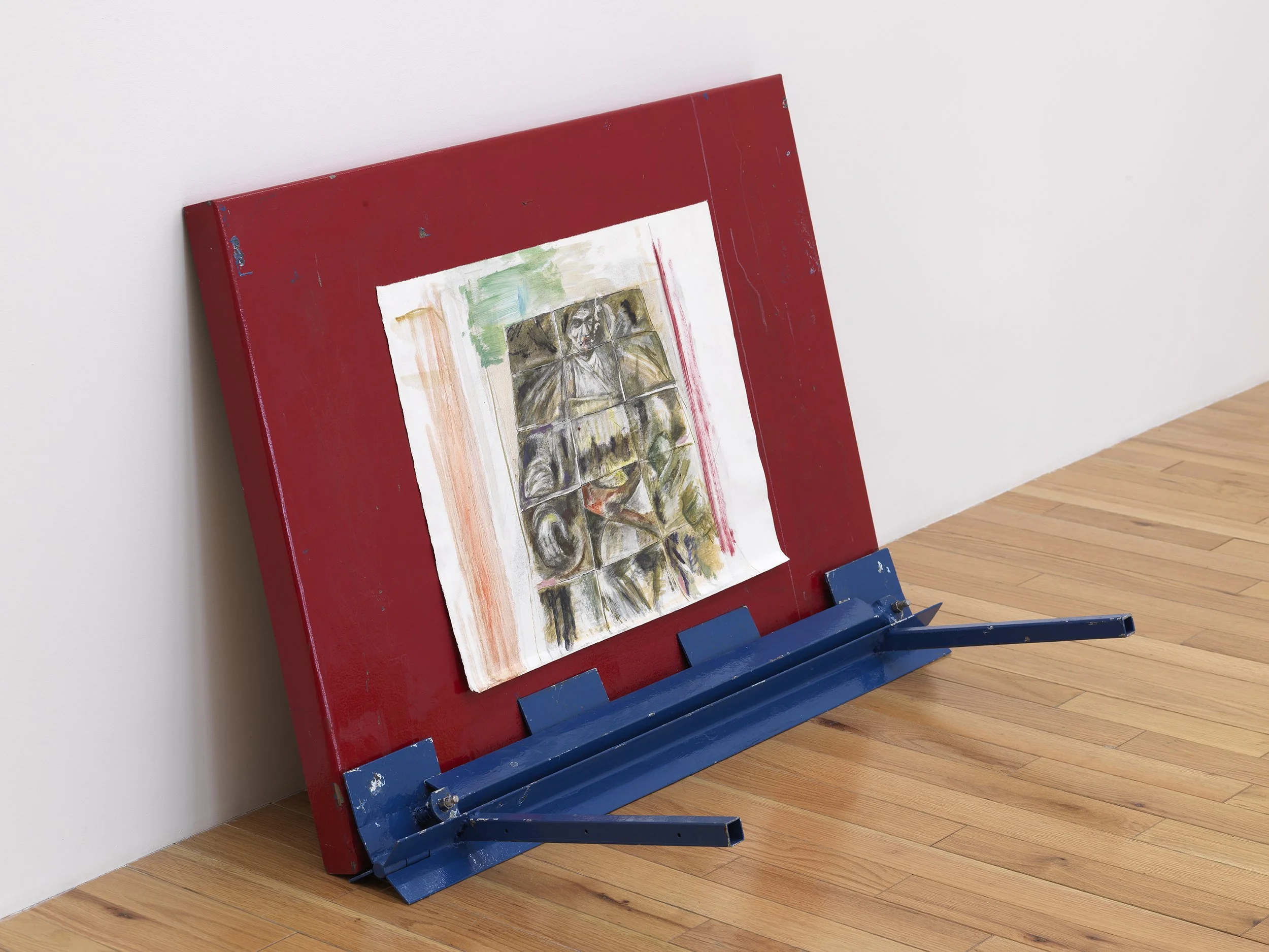 Oil paint, graphite, and ink on paper on steel brake