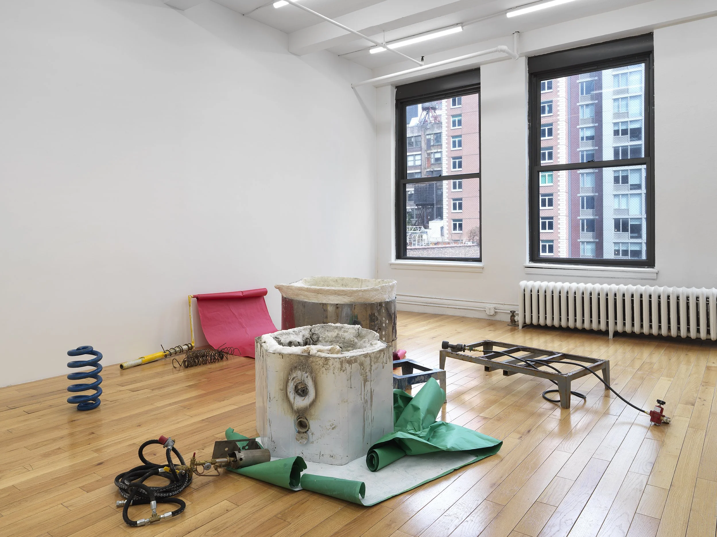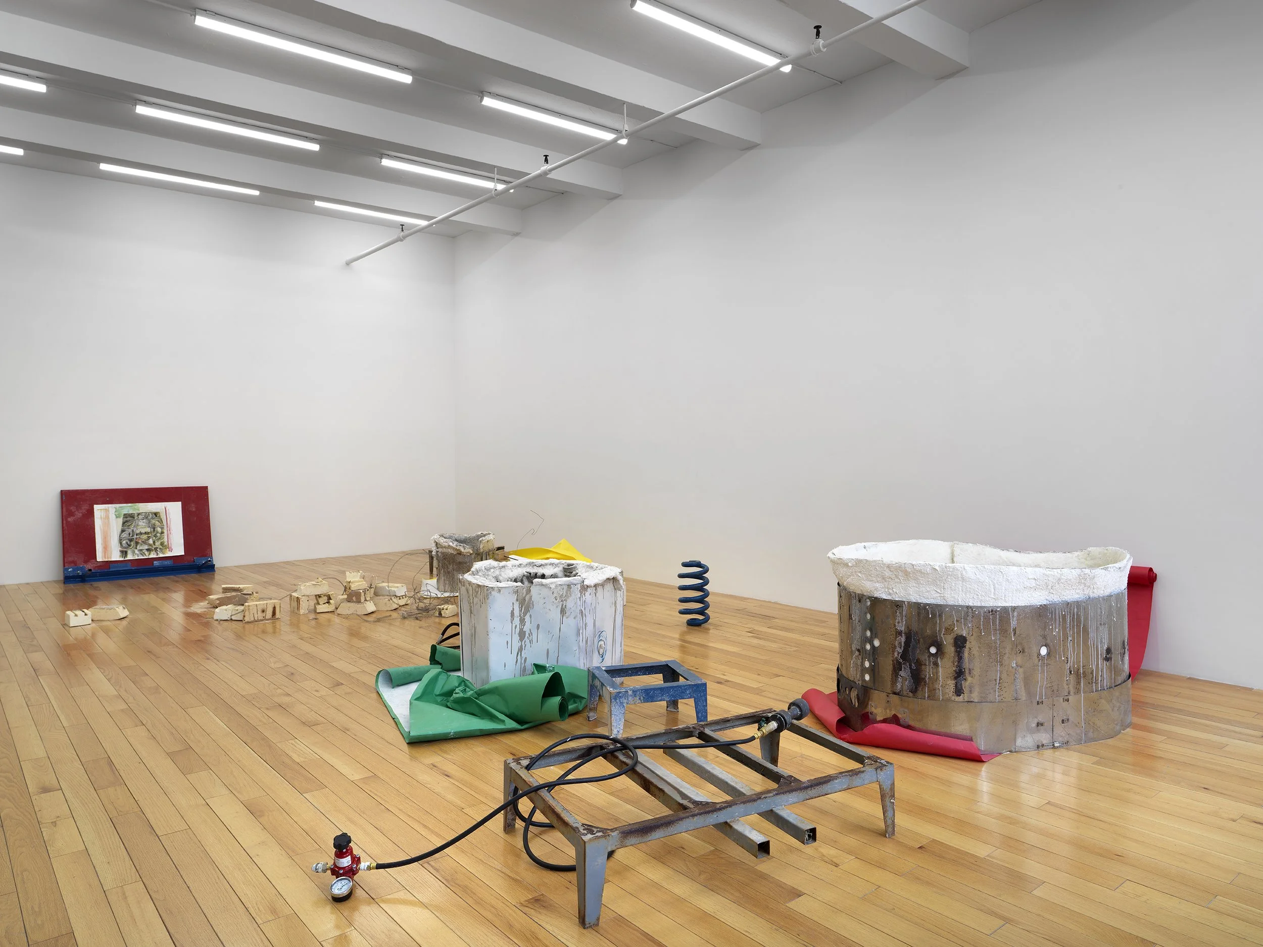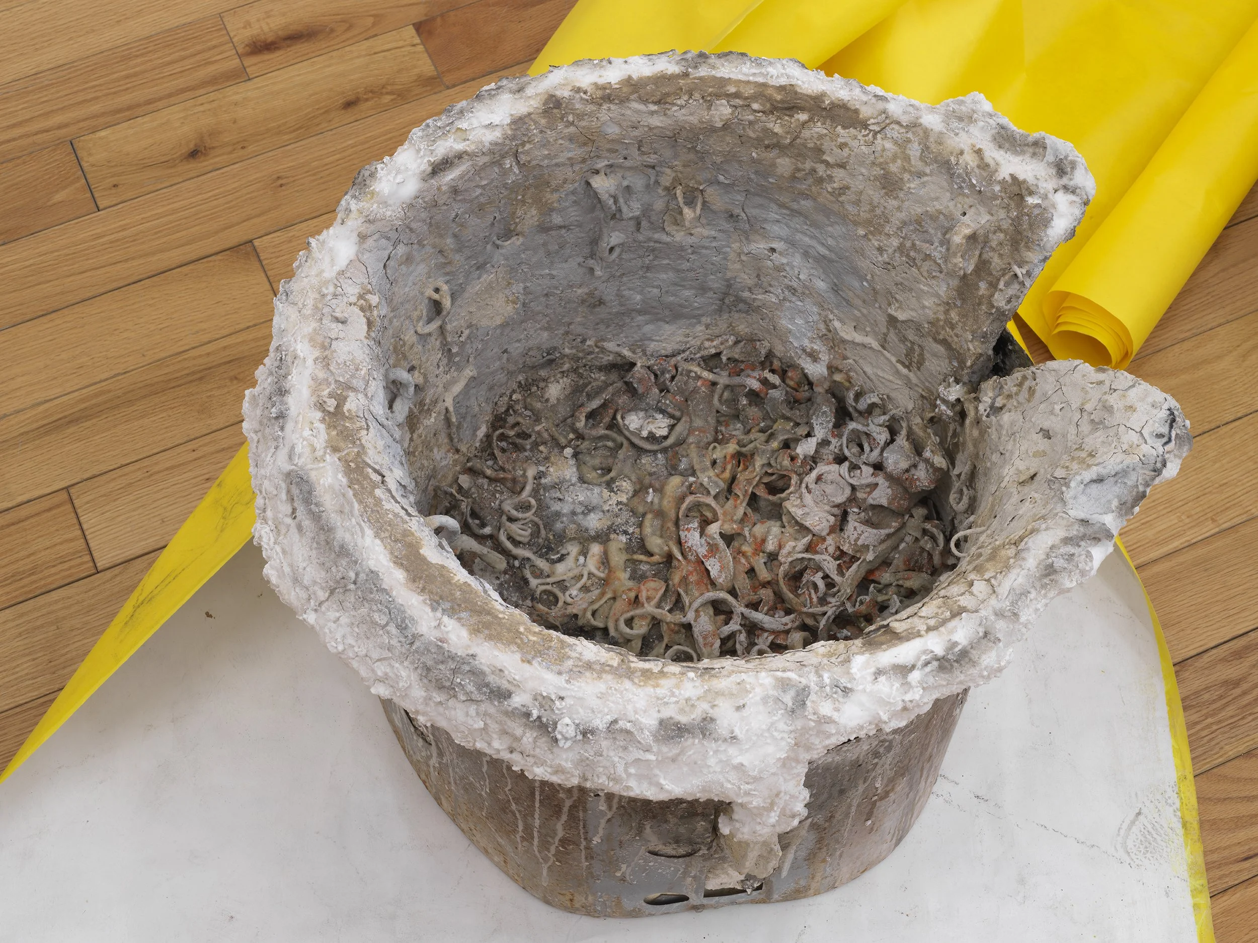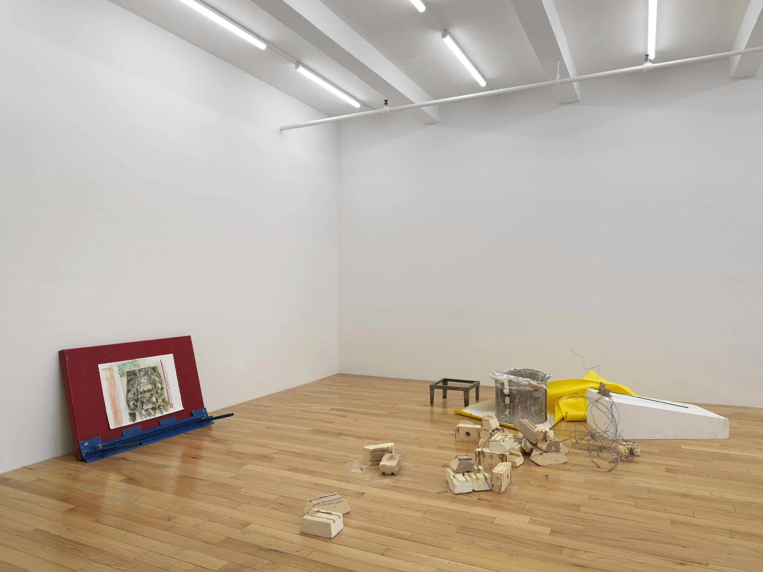 Oil paint, graphite, and ink on paper on steel brake
